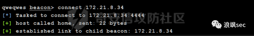 生成beacon.exe到目标机器上运行,使用 connect [ip address] [port] 命令进行正向连接,即可上线