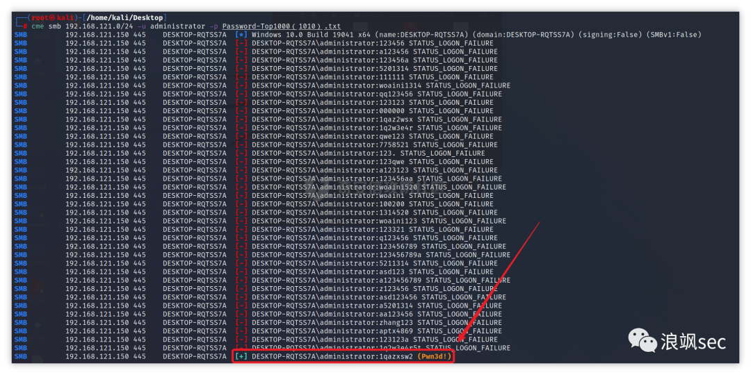 通过拿到的机器整理出密码本,对内网其他机器进行密码喷射