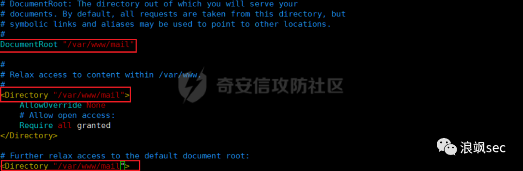 systemctl status httpd.service更改配置文件/etc/httpd/conf/httpd.conf,这里修改/var/www/mail为根目录,也可以使用默认配置