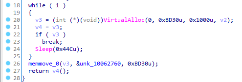 用于下阶段注入的shellcode通过lpdiystruct->lppayload参数传入0x00000000004d0000开始的x64加载shellcode。
