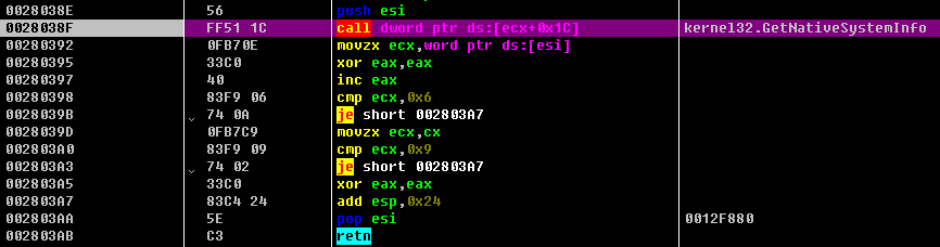 调用GetNativeSystemInfo,判断是否为x64系统。