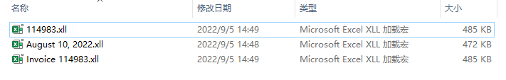 攻击样本均为Excel扩展插件xll类型,此类型文件携带Excel图标,双击时由Excel进程加载执行。