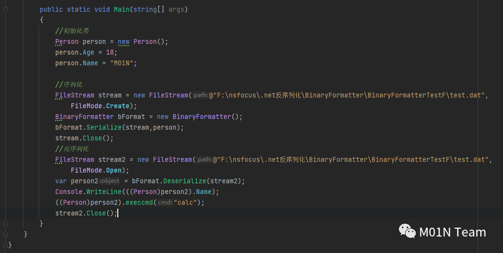 更简单的比喻是,假设在有效负载上调用BinaryFormatter.Deserialize相当于将该有效负载解释为独立的可执行文件并启动它。更多内容可以看官网介绍:使用BinaryFormatter和相关类型时的反序列化风险(https://learn.microsoft.com/zh-cn/dotnet/standard/serialization/binaryformatter-security-guide)