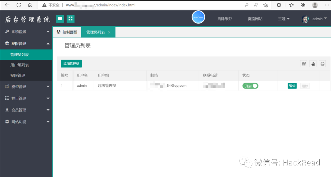 试了试弱口令,admin/123456登陆成功,激动的心颤抖的手,这是不是看管理员界面不好找就放弃设置强密码了。