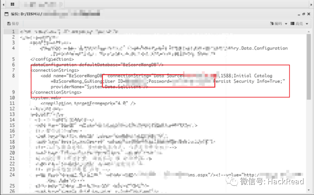 看了看这个服务器的文件,发现这台服务器还有其他公司网站的数据,看来是个开发公司或者服务器商。爽歪歪,网站权限和服务器权限都有了,看看能不能拿下数据库,继续逛逛这后台文件,发现一个里面有写数据库的账号密码和IP端口。