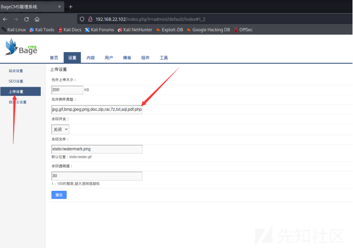 8.到后台的时候看到有这个模板就发现可以修改默认文件,啊 就算你不知道修改,你非要找个上传点,就得找这个上传设置给搞一下添加php后缀