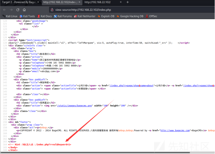 1.我们通过nmap或者msf自带的端口扫描工具查找到192.168.22.102存在80端口也就是网页,之后再来访问网页来获取一些信息