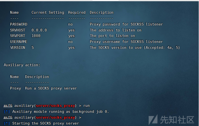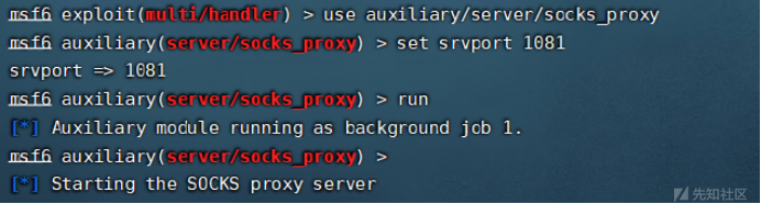 kali msf运行下面命令use auxiliary/server/socks_proxyset srvport 1080exploit
