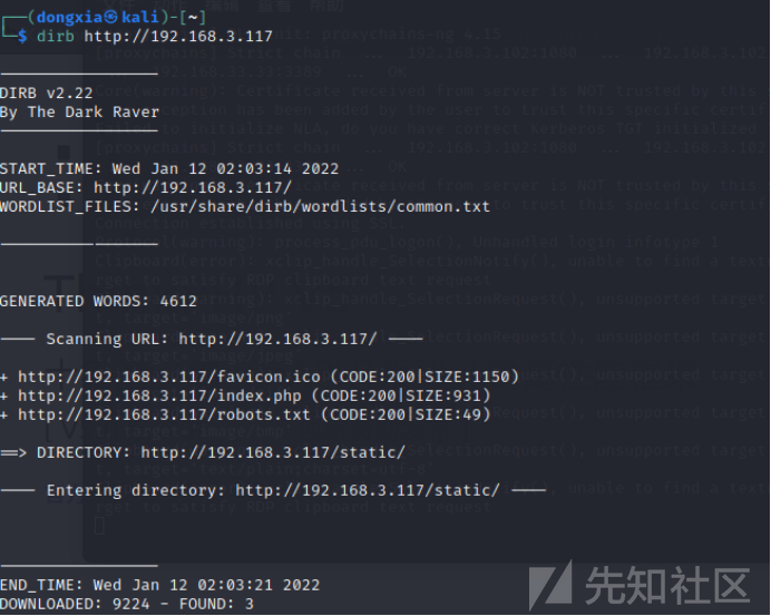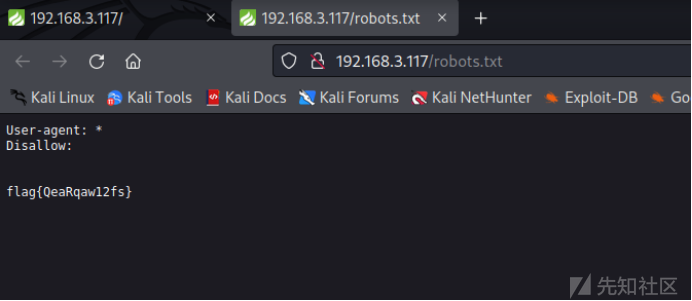 1.先利用kali自带的dirb来扫描网站目录,发现robots.txt找到一个flag