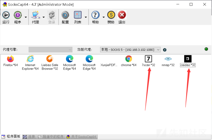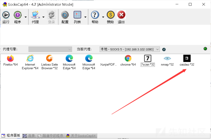 10.用sockscap软件添加一个caidao的代理,然后一连