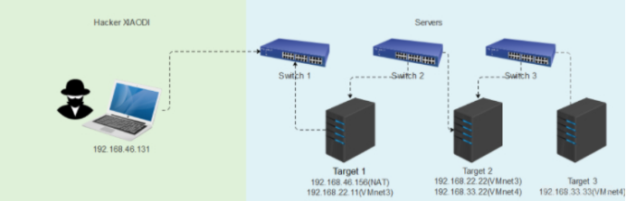 这个靶场可以学习到如何一步步利用跳板代理横向到最深处网络。Thinkphp5.x Rce漏洞利用,三种利用方式,以及echo写马的注意事项MSF添加路由和socks代理,将Linux主机作为跳板从而横向移动,八哥CMS的漏洞利用Getshell,sql注入-->后台管理登陆,后台模板GetshellMs17-010的psexec利用模块的使用典型的三层网络环境,通过利用MSF强大的路由功能,不断添加路由+socks代理,横向移动到最后一层网络SocksCap64小红帽软件代理工具的使用