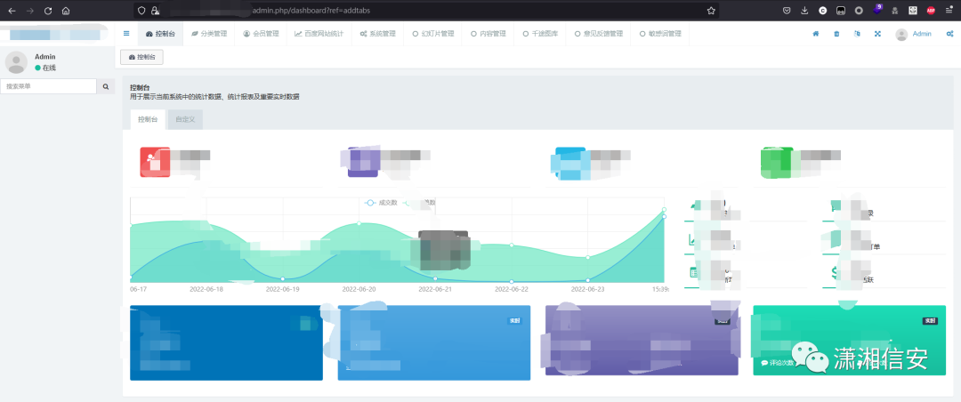 输入admin.php进入后台登录页面,弱口令进入后台。
