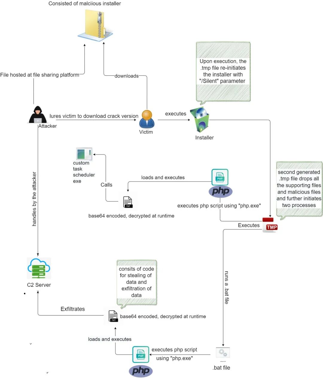 研究人员发现,Ducktail Infostealer的新PHP版本正通过伪装成免费或破解的应用程序安装程序来分发,受影响的程序包括游戏、Microsoft Office应用程序、Telegram等,恶意安装程序大多以ZIP文件格式托管在一个文件共享网站:mediafire[.]com上。