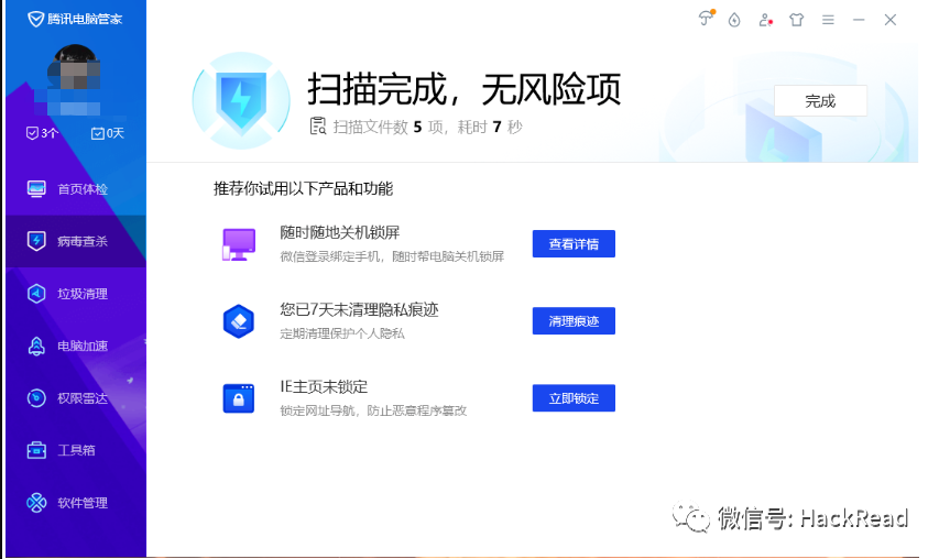 开始时间:2022-5-27 23:40:48扫描用时:00:00:06扫描类型:指定位置杀毒扫描引擎:管家云查杀引擎 管家系统反病毒引擎 管家系统修复引擎 Bitdefender本地查杀引擎扫描状态:扫描完成【扫描结果】扫描文件数:5发现风险数:0已处理风险数:0