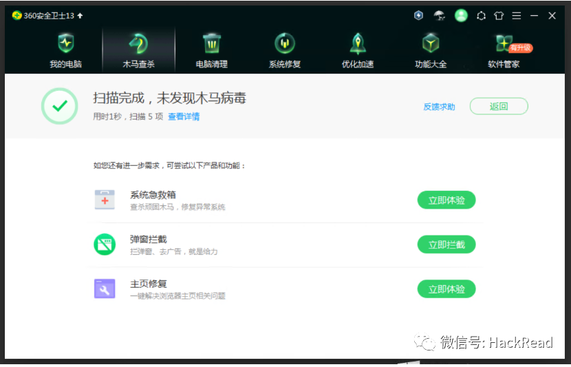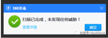 360木马查杀扫描日志开始时间: 2022-5-27 23:44:42扫描用时: 00:00:01扫描类型: 自定义扫描扫描引擎:360云查杀引擎(本地木马库) 360启发式引擎 QEX脚本查杀引擎 QVM Ⅱ人工智能引擎 鲲鹏引擎扫描文件数: 5系统关键位置文件: 0系统内存运行模块: 0压缩包文件: 0安全的文件数: 5发现安全威胁: 0已处理安全威胁: 0扫描选项扫描后自动关机: 否扫描模式: 速度最快管理员:是扫描内容C:\Users\Administrator\Desktop\Demo\扫描结果未发现安全威胁