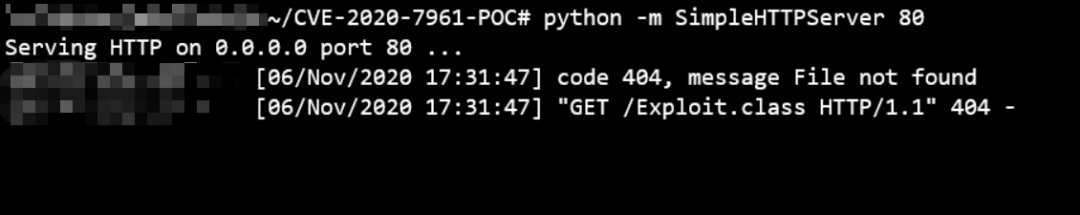 之后在服务器开启HTTP的服务,挂在编译之后的Exploit.class文件