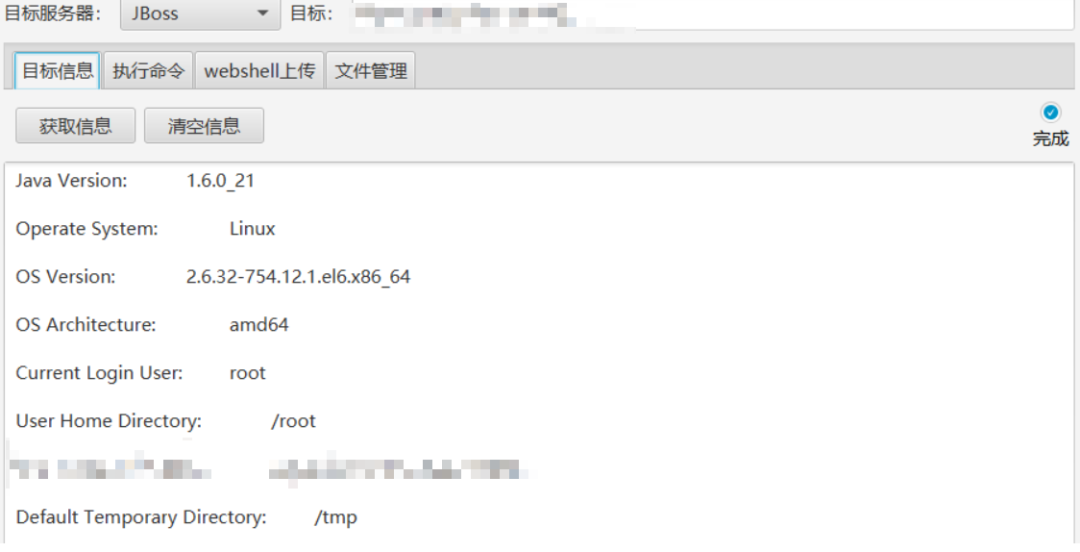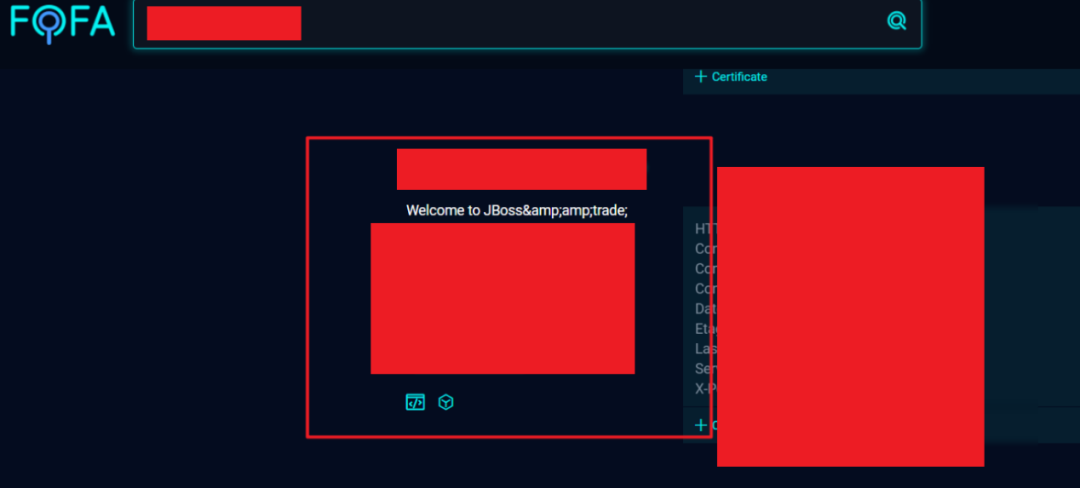 使用fofa来对其中的一个域名进行信息收集,发现了一处JBoss的资产存在未授权访问,这里我直接上了一个shell上去。![]()