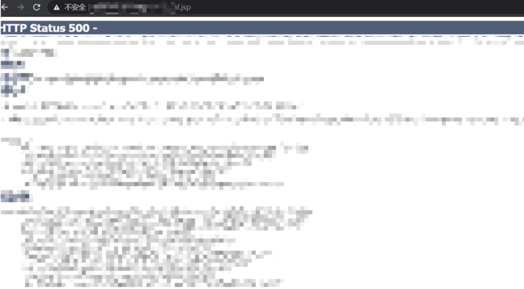 通过未授权登陆进入管理页面部署到webshell,接着访问到这个页面返回500的错误,但是问题不大。![]()