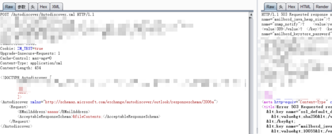 接着对Zimbra 网络客户端 这个点进行测试,在网上已经找到了它的漏洞。这里有一个XML注入漏洞。利用了CVE-2019-9670 XXE漏洞来读取配置文件。Zimbra配置文件位置为/conf/localconfig.xml