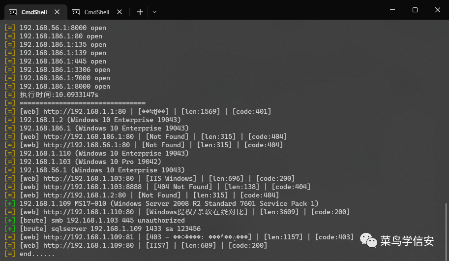 Ports = []int{21, 22, 23, 80, 81, 82, 83, 84, 85, 86, 87, 88, 89, 90, 91, 92, 98, 99, 135, 139, 443, 445, 800, 801, 808, 880, 888, 889, 1000, 1010, 1080, 1081, 1082, 1118, 1433, 1521, 1888, 2008, 2020, 2100, 2375, 2379, 3000, 3008, 3128, 3306, 3505, 5432, 5555, 6080, 6379, 6648, 6868, 7000, 7001, 7002, 7003, 7004, 7005, 7007, 7008, 7070, 7071, 7074, 7078, 7080, 7088, 7200, 7680, 7687, 7688, 7777, 7890, 8000, 8001, 8002, 8003, 8004, 8006, 8008, 8009, 8010, 8011, 8012, 8016, 8018, 8020, 8028, 8030, 8038, 8042, 8044, 8046, 8048, 8053, 8060, 8069, 8070, 8080, 8081, 8082, 8083, 8084, 8085, 8086, 8087, 8088, 8089, 8090, 8091, 8092, 8093, 8094, 8095, 8096, 8097, 8098, 8099, 8100, 8101, 8108, 8118, 8161, 8172, 8180, 8181, 8200, 8222, 8244, 8258, 8280, 8288, 8300, 8360, 8443, 8448, 8484, 8800, 8834, 8838, 8848, 8858, 8868, 8879, 8880, 8881, 8888, 8899, 8983, 8989, 9000, 9001, 9002, 9008, 9010, 9043, 9060, 9080, 9081, 9082, 9083, 9084, 9085, 9086, 9087, 9088, 9089, 9090, 9091, 9092, 9093, 9094, 9095, 9096, 9097, 9098, 9099, 9100, 9200, 9443, 9448, 9800, 9981, 9986, 9988, 9998, 9999, 10000, 10001, 10002, 10004, 10008, 10010, 10250, 11211, 12018, 12443, 14000, 16080, 18000, 18001, 18002, 18004, 18008, 18080, 18082, 18088, 18090, 18098, 19001, 20000, 20720, 21000, 21501, 21502, 27017, 28018, 20880}点击下方名片进入公众号