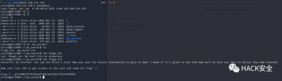 直接ssh登录即可,ll查看目录,并发现了flag1.txt