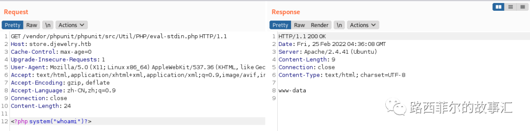 根据上面对该漏洞的描述,在vendor/phpunit/phpunit/src/Util/PHP/eval-stdin.php处进行利用,咱们抓个包进行一次尝试