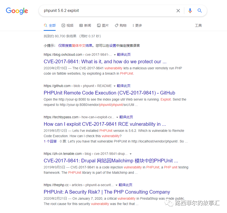 这边搜索后可以看到有一个CVE-2017-9841是符合我们的条件的