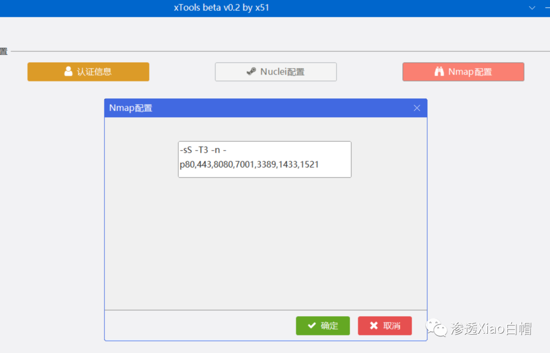可在程序配置界面——Nmap配置处,填入自定义Nmap命令,代码处理逻辑如下: