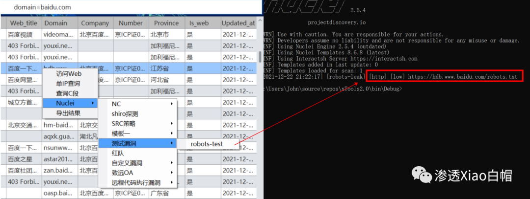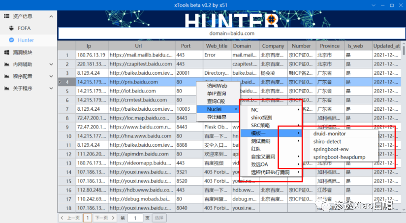 选择并点击需要探测的POC名称即可调起nuclei程序进行扫描,点击分类菜单会对该目录下所有POC进行探测: