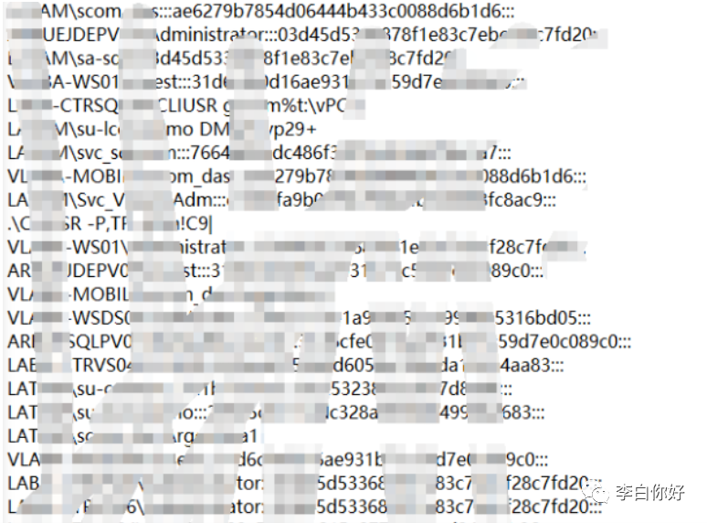 域内机器上线成功之后,继续抓取明文密码和Hash,终于发现多个域管明文密码和账号,如下所示。