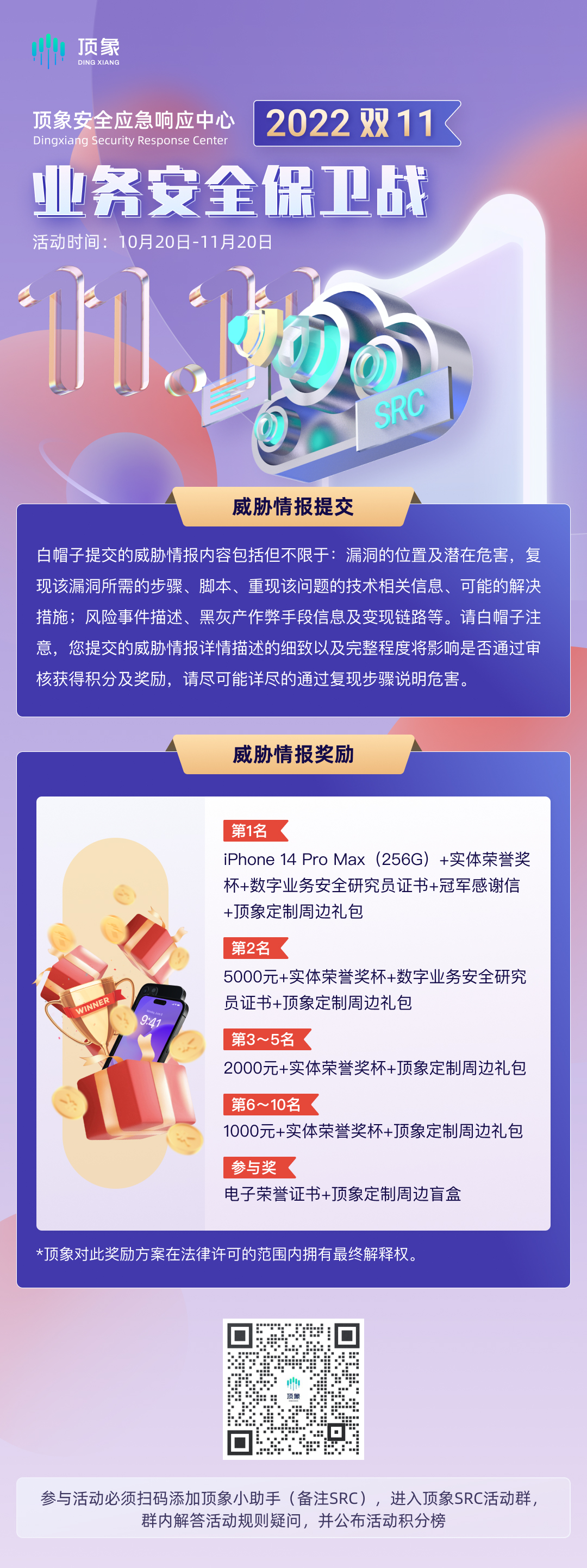 活动期间,参赛者可扫描下方二维码或通过以下链接在顶象安全应急响应中心报名: