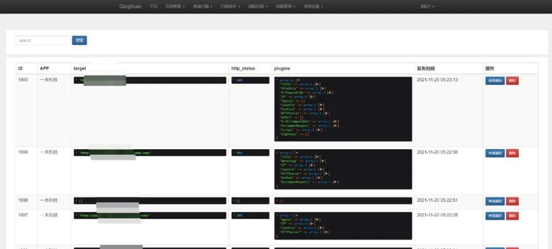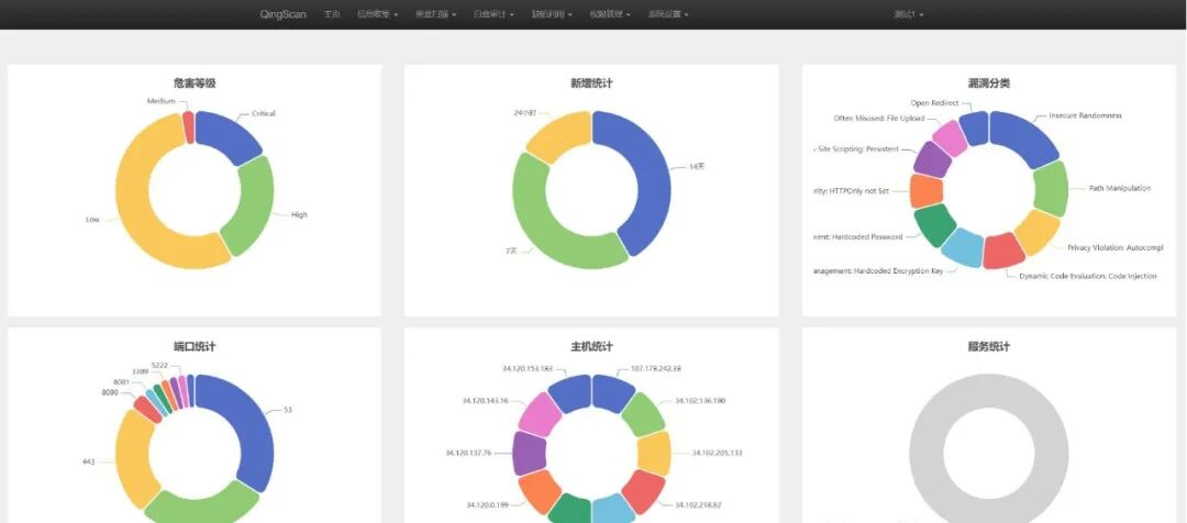 QingScan 是一款聚合扫描器,本身不生产安全扫描功能,但会作为一个安全扫描工具的搬运工;当添加一个目标后,QingScan会自动调用各种扫描器对目标进行扫描,并将扫描结果录入到QingScan平台中进行聚合展示