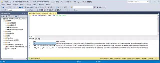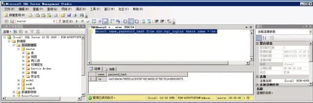 Select name,password_hash from sys.sql_logins where name = 'sa'Hash格式: