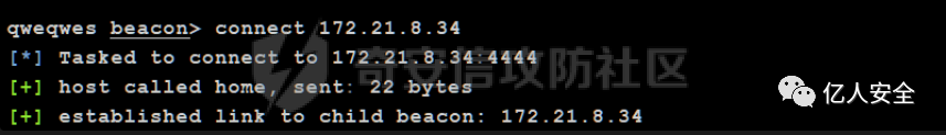 生成beacon.exe到目标机器上运行,使用 connect [ip address] [port] 命令进行正向连接,即可上线