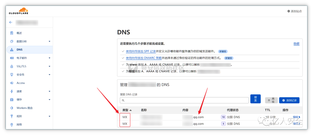 把记录填入到cloudflare的dns位置,选择MX类型,MX优先级保持一致即可