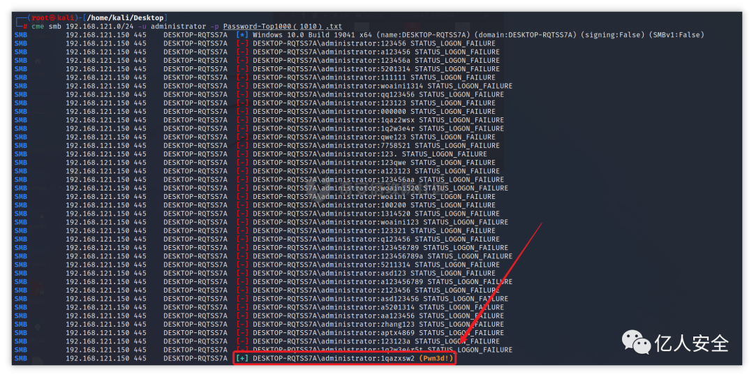 通过拿到的机器整理出密码本,对内网其他机器进行密码喷射