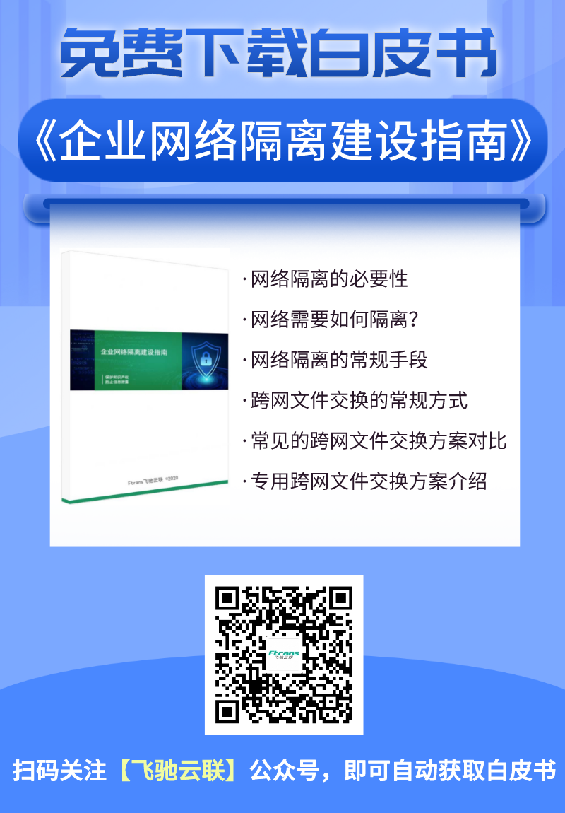 免费获取《企业网络隔离建设指南》完整白皮书资料,了解更多关于网络隔离及文件摆渡方面信息!