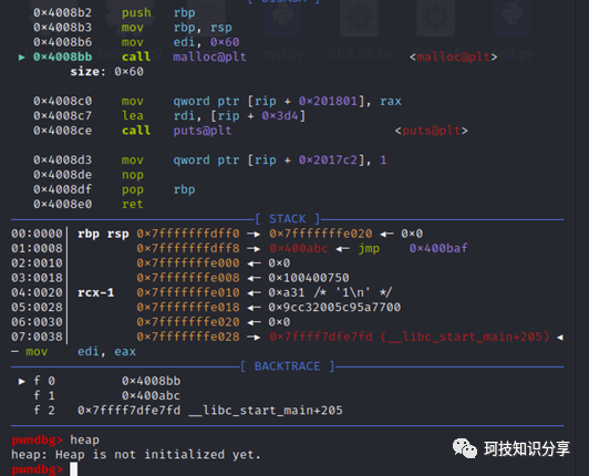注意二:如果这里libc未设置好debug,一些gdb命令比如heap无法使用,可以暂时用备份调试。