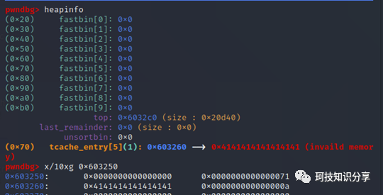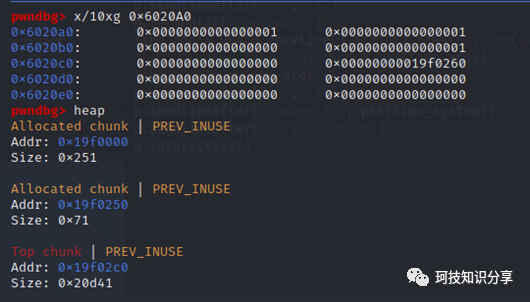 malloc之后,出现chunk,Size: 0x71是我们开辟的chunk。
