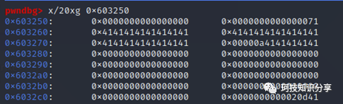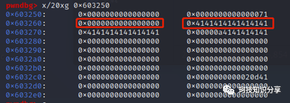buf新开辟的chunk地址就是AAAAAAAA,后面又有read,等于我们可以完全控制一个地址中的0x40字节。那么控制哪里才能产生效果呢?