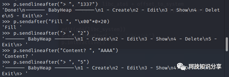 p.sendlineafter("> ", "2")p.sendlineafter("Content? ", "AAAA")