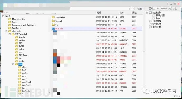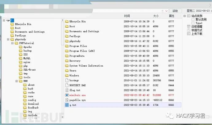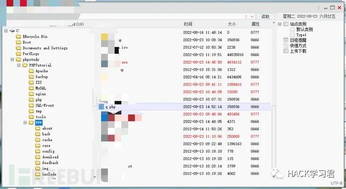 可以看到连接成功,然后把刚才修改的文件上传类型改回原样,毕竟明目张胆也是不太好的。