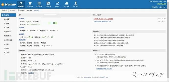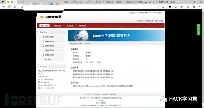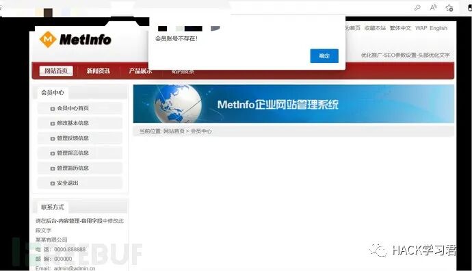 通过之前扫描目录出来的后台地址进行登录,后台登录 - MetInfo企业网站管理系统 (xxxxxx.xyz)