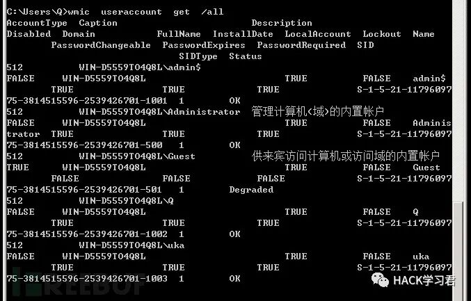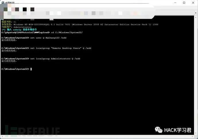 net localgroup Administrators Q /add 将创建的用户添加到管理员组