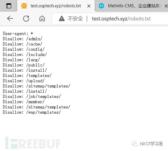 信息收集一波:查看robots.txt,网站CMS识别,whois查询。