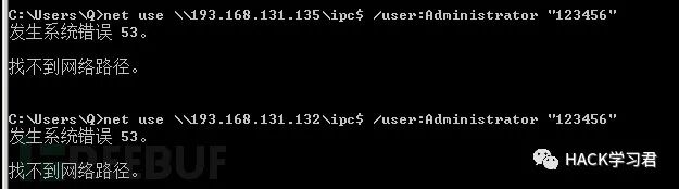 net use \\193.168.131.132\ipc$ /user:Administrator "123456"